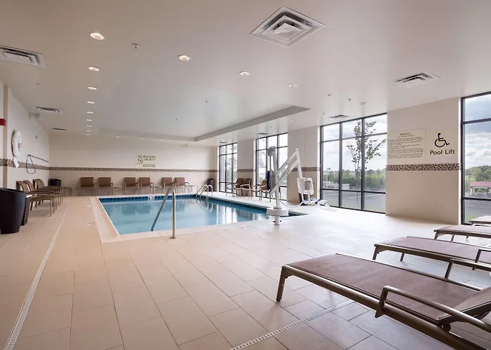 Recreational amenities include an indoor pool and a fitness center equipped with cardio equipment and free weights. Outdoor activities can be found at Panther Creek State Park, located 12 miles away, while Millstone Golf Club is an option for guests looking to play golf.
