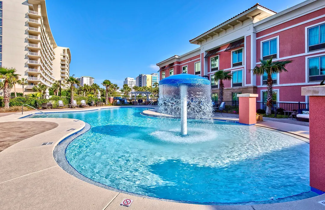 The hotel provides a daily complimentary hot breakfast buffet and is close to multiple dining options, including Fudpucker's and Bubba Gump Shrimp Co. This selection of nearby restaurants offers diverse cuisine choices, suitable for family meals.