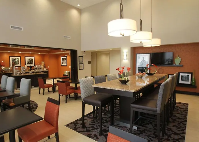 A complimentary fresh hot breakfast buffet is served daily, providing options from light continental favorites to hot items. Nearby dining options are also accessible for guests seeking a variety of culinary experiences.