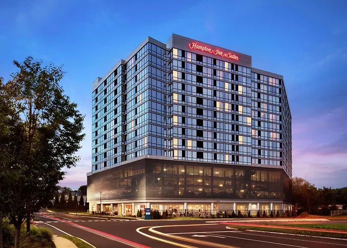 Hampton Inn & Suites Teaneck/Glenpointe is a 4-star hotel rated 8.4/10 on Booking.com, featuring an indoor pool and a fitness center. Guests can enjoy a complimentary hot breakfast daily along with convenient amenities like free WiFi and EV charging.
