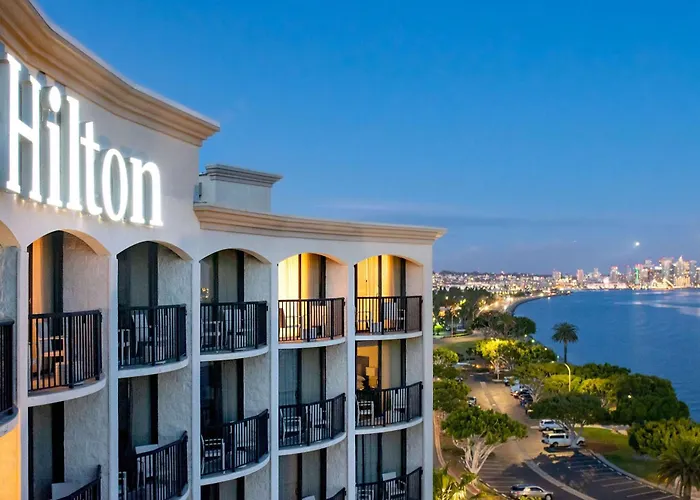 Hilton San Diego Airport/Harbor Island, a 3-star hotel with an 8.2/10 Rating on Booking.com, boasts scenic views of the marina and downtown skyline. This non-smoking waterfront hotel offers an outdoor pool, fitness center, and convenient free airport shuttle service.