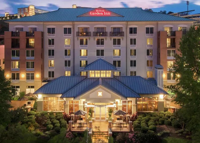 Hilton Garden Inn Chattanooga Downtown, a 3-star hotel with an 8.8/10 rating on Booking.com, features on-site dining and a heated indoor pool. The hotel provides amenities such as free WiFi, meeting rooms, and air-conditioned rooms equipped with microwaves and refrigerators.