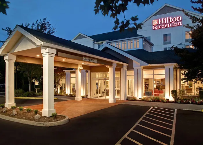 Hilton Garden Inn Portland/Beaverton features a 3-star rating with an 8.2/10 score on Booking.com. This hotel offers amenities including a heated indoor pool, fitness center, and pet-friendly rooms. Dining options include The Garden Grille & Bar specializing in cooked-to-order breakfasts and American cuisine.
