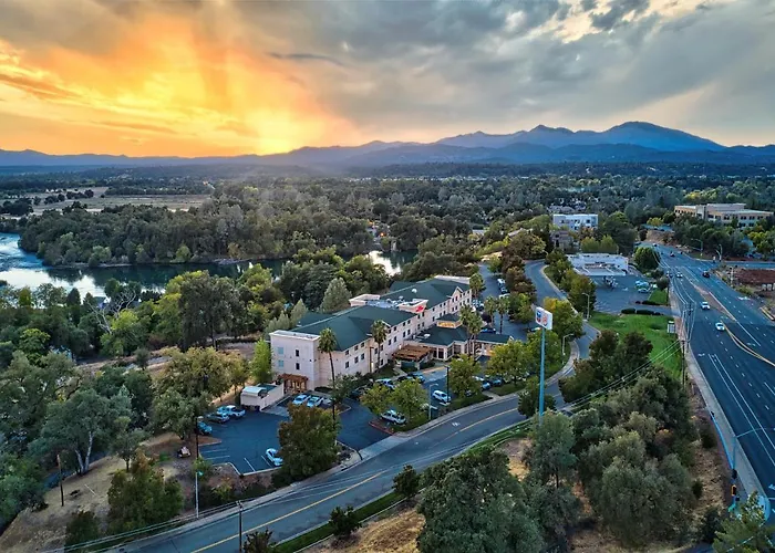 Leisure facilities include a heated outdoor pool, spa tub, and a fitness center. Guests are also encouraged to explore nearby natural attractions like Shasta State Historic Park and Whiskeytown Shasta Trinity National Recreation Area.