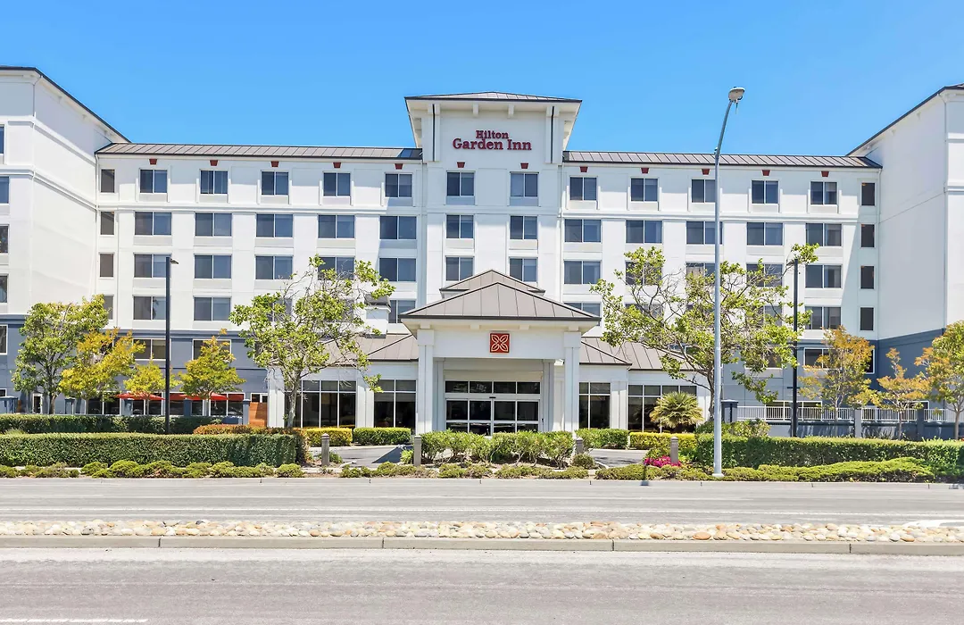 Hilton Garden Inn San Mateo, a 3-star hotel with an 8.5/10 Booking.com rating, offers thoughtful services including a free airport shuttle. Amenities include an outdoor pool, 24-hour fitness center, and on-site dining options.