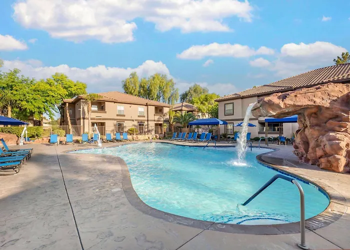 Hilton Vacation Club Desert Retreat Las Vegas (3-star) offers family-friendly accommodations featuring fully furnished one-bedroom suites with a king-sized bed. Guests benefit from resort-style amenities such as heated pools, hot tubs, and a fitness center, along with a non-gaming environment that caters to leisure and business travelers.