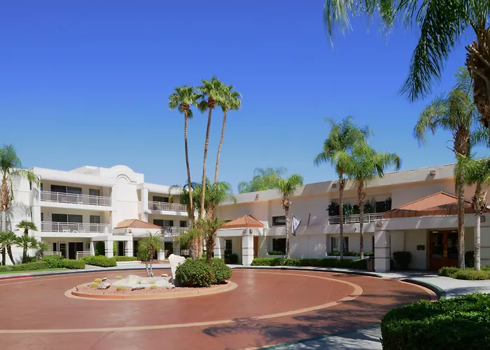 The hotel boasts a lavish outdoor environment with two pools, including one with a waterslide, as well as a day spa boutique. Outdoor activities such as hiking and visiting local attractions like the Moorten Botanical Garden are easily accessible.