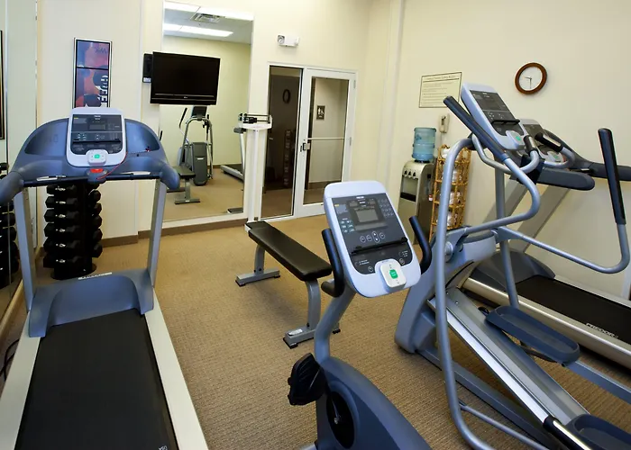 Leisure options include an indoor heated pool that provides year-round enjoyment. The hotel also features a fitness center with free weights and cardio equipment to help guests maintain their fitness routines.
