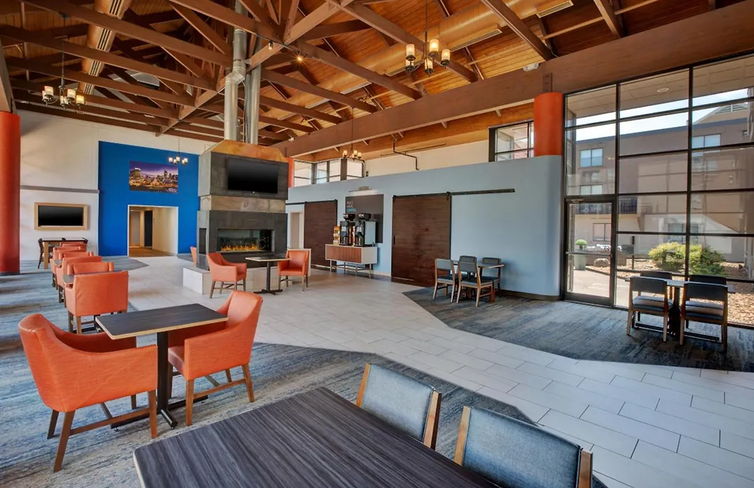 The hotel offers a complimentary hot breakfast buffet, featuring eggs, oatmeal, pastries, and famous cinnamon rolls. While there is no on-site restaurant, several dining options are available within a short driving distance, including Subway and McDonald's.