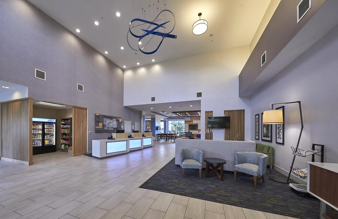 Dining options include Amici, which offers breakfast and dinner with local beer and wine. The complimentary Express Start breakfast includes a buffet with eggs, bacon, and a variety of continental items.