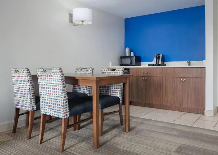 The Holiday Inn Express features 122 rooms, each equipped with triple-sheeted bedding, a mini refrigerator, and complimentary high-speed internet access. Guests can choose from soft or firm pillows and enjoy in-room coffee and tea facilities.