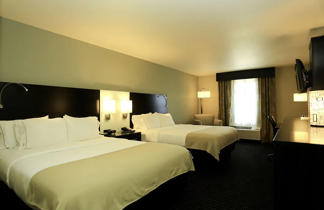 All rooms at Holiday Inn Express feature a fridge, microwave, and 32-inch flat panel HD television with HD channels. Guests can find premium bedding and separate sitting areas in each of the 105 accommodations.