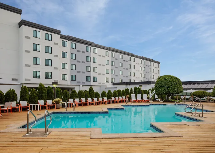 The Holiday Inn Hasbrouck Heights-Meadowlands is a 3-star hotel with a rating of 7.9/10 on Booking.com, offering modern accommodations and convenient amenities. It features a seasonal outdoor pool, a 24-hour fitness center, and an on-site restaurant serving breakfast and dinner. This Hasbrouck Heights hotel provides easy access to attractions like the American Dream Mall and MetLife Stadium.