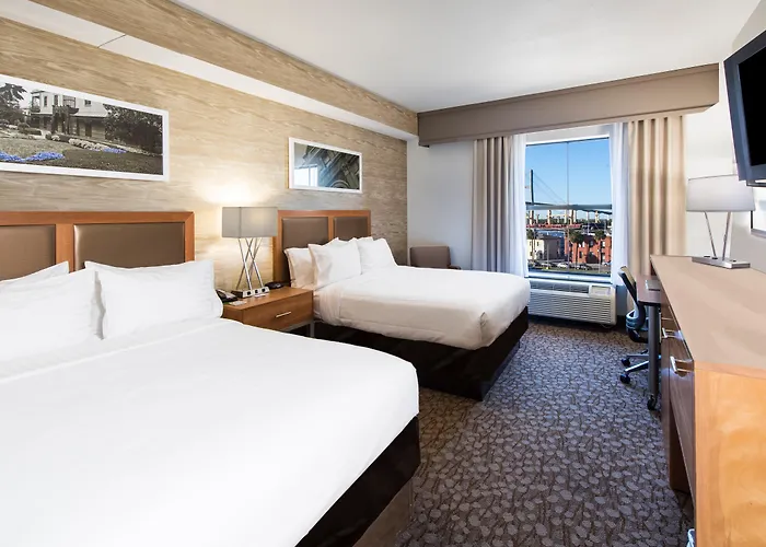 The Holiday Inn Savannah Historic District By Ihg provides clean and comfortable guest rooms equipped with HDTVs, coffee makers, and desks with ergonomic chairs. Suites feature separate lounge areas with sleeper sofas, ideal for families seeking extra space.