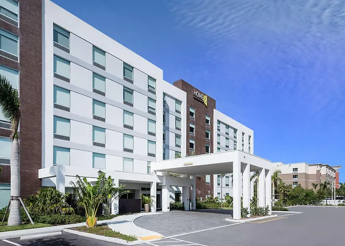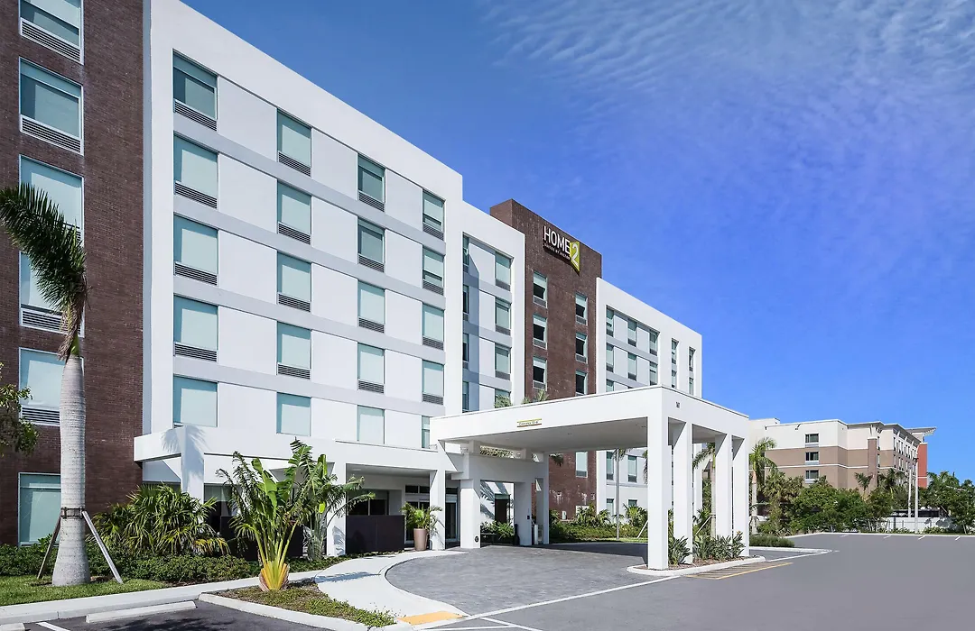Home2 Suites By Hilton Ft. Lauderdale Airport-Cruise Port is a 3-star Dania Beach hotel offering studio and one-bedroom suites with fully equipped kitchens. Guests enjoy complimentary hot breakfast featuring over 400 options and a range of amenities, including an outdoor pool and fitness center.