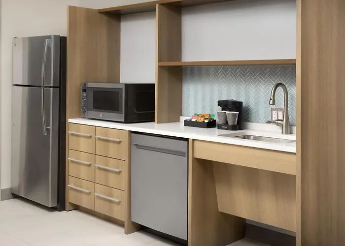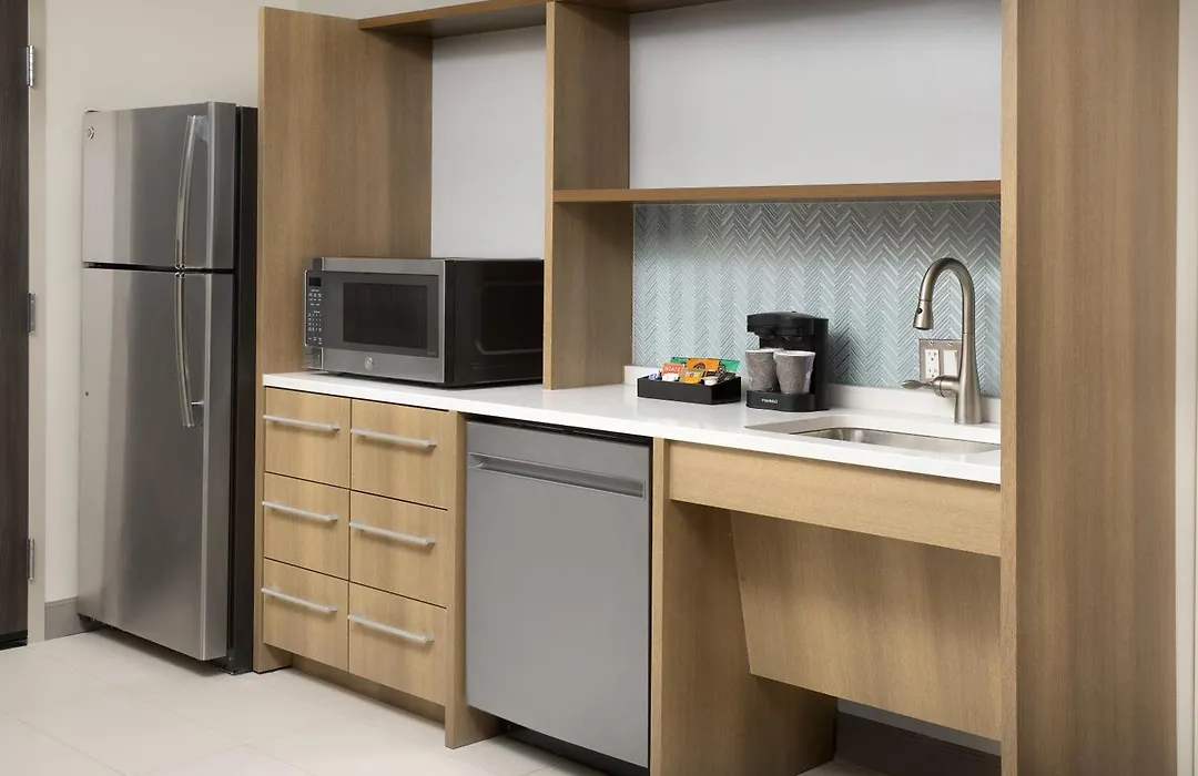 The hotel features stylish studio and one-bedroom suites that include living areas with full-sized sofa beds, kitchenettes complete with full-sized refrigerators, microwaves, and dishwashers. Each room comes equipped with free WiFi, HDTVs, and a private bathroom.
