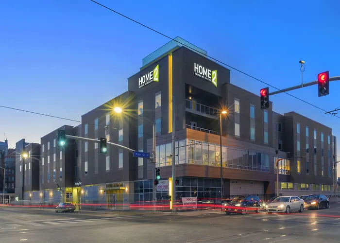 Home2 Suites Kansas City Downtown is a mid-tier, all-suite hotel rated 8.5/10 offering contemporary accommodations and flexible living spaces. The hotel features an indoor saline pool, a fitness center, and customizable guest room designs. Business services and a complimentary grocery shopping service enhance the convenience for guests.