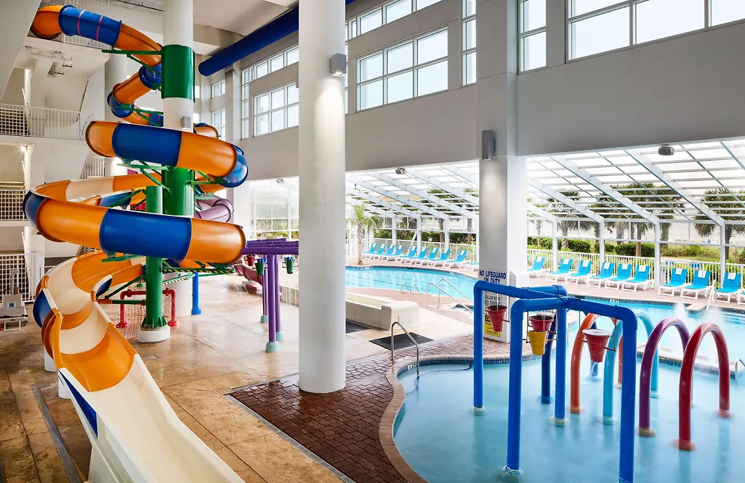 The hotel is conveniently located 6 miles from Myrtle Beach International Airport and an 8-minute walk from Myrtle Beach Greyhound bus station. This ensures straightforward transportation for guests arriving by air or bus.