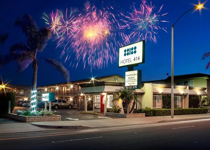 Hotel 414 Anaheim offers 3-star accommodations with modern amenities such as free Wi-Fi and an outdoor pool, making it convenient for families visiting nearby attractions. The hotel is a short distance from Disneyland Resort and Knott's Berry Farm.