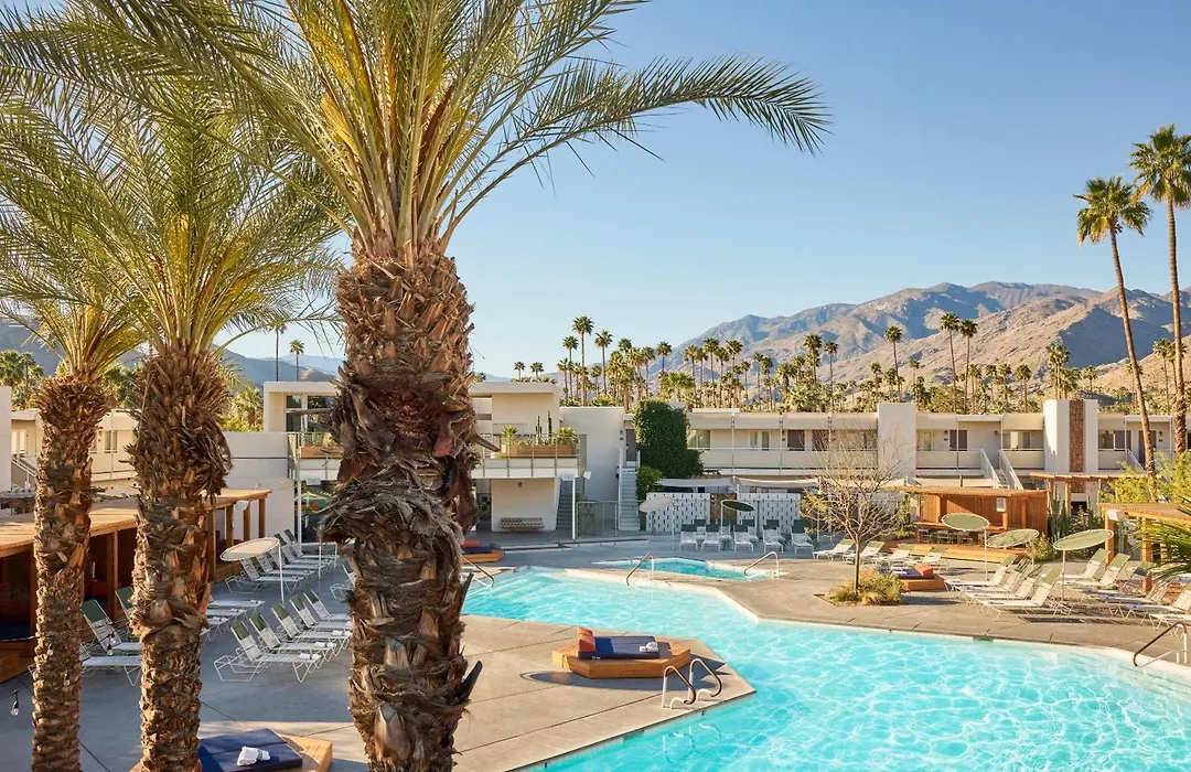 Ace Hotel And Swim Club Palm Springs, a 4-star Palm Springs hotel, features unique mid-century modern design, two swimming pools, and an onsite full-service spa. Dining options include King's Highway restaurant, serving American cuisine with seasonal ingredients. The hotel is pet-friendly and offers a variety of rooms with distinctive decor.