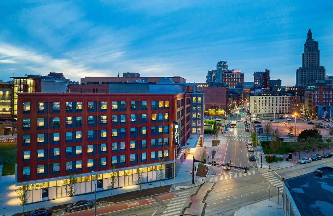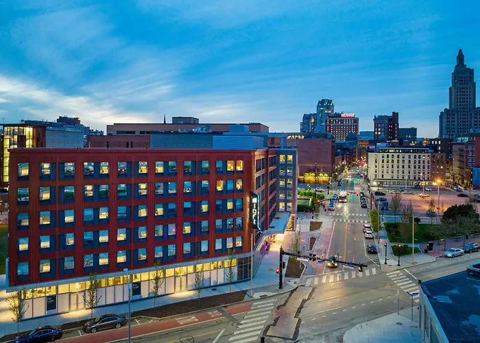 Aloft Providence Downtown, a 3-star Providence hotel rated 8.6/10 on Booking.com, features modern amenities including a fitness center, a restaurant, and a lively rooftop bar, Blu Violet. This dog-friendly hotel offers enhanced facilities and is located within the vibrant Jewelry District.