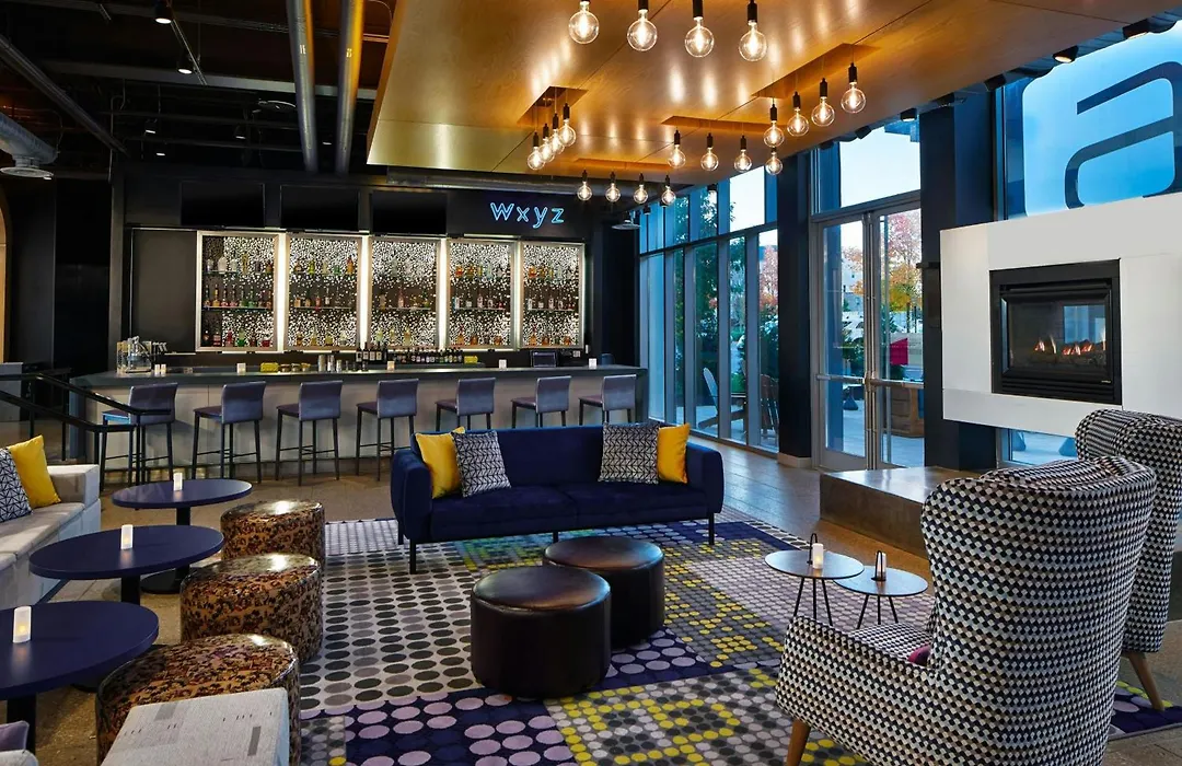 Dining options include an on-site restaurant serving eclectic cuisine 24 hours a day and a grab-and-go eatery for quick meals and coffee drinks. W XYZ Bar offers trendy cocktails and live music, providing a lively atmosphere for guests to unwind.