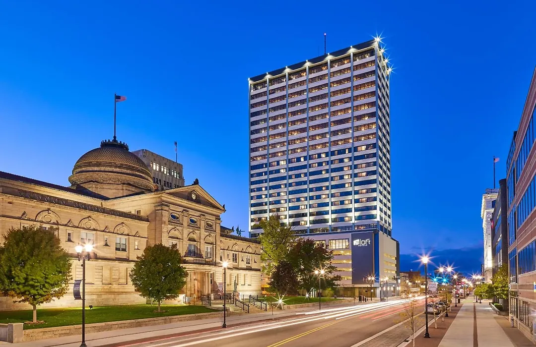 Aloft South Bend is a 3-star hotel featuring chic accommodations and a variety of amenities, including an indoor pool and fitness center. The hotel offers easy access to the Century Center Convention Center, museums, and local dining options.