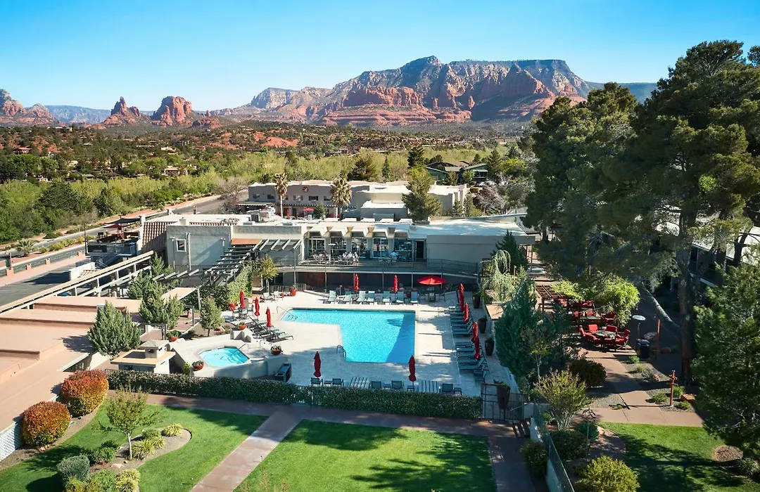 Arabella Hotel Sedona, rated 8.7/10 on Booking.com, is a pet-friendly 3-star hotel nestled among the stunning Red Rocks of Sedona. The property features two heated pools, a hot tub, complimentary cruiser bikes, and an on-site dining option offering authentic Mexican cuisine at Molé Fine Mexican Kitchen.