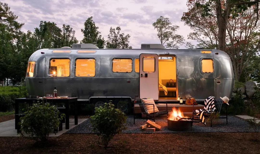 Autocamp Cape Cod offers an opportunity to camp in an idyllic natural setting along the Atlantic Coast, featuring modern accommodations such as Luxury Tents and Airstreams. This 4-star Falmouth hotel includes a mid-century modern clubhouse, general store, and a restaurant.