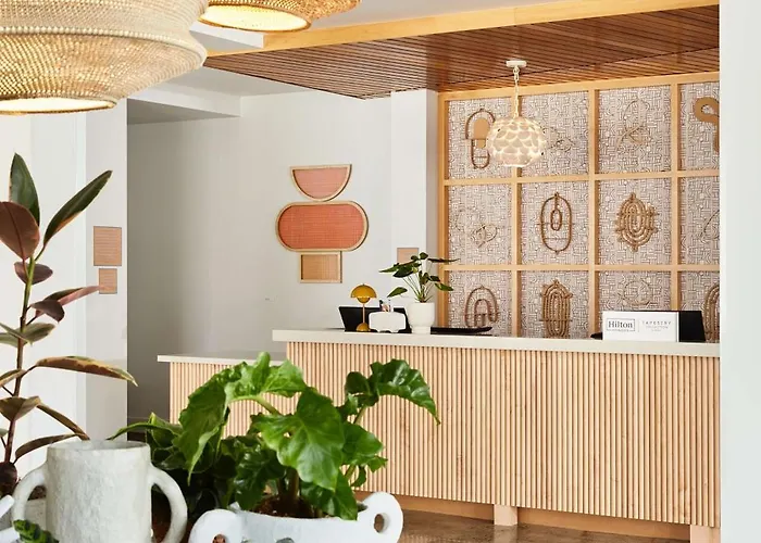 Avatar Hotel Santa Clara, Tapestry Collection By Hilton is a 4-star hotel with a rating of 8.2/10 on Booking.com. It offers amenities such as an outdoor pool, a fitness center, and on-site dining at ParkStone Wood Kitchen and Taps. The hotel is pet-friendly and features a communal table in the lobby for guest interaction.