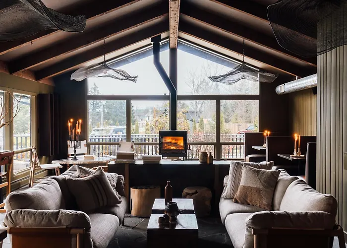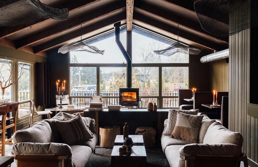 Rooms at Awol Stowe include air-conditioned chalets with separate living areas, a private bathroom with a walk-in shower, and a fireplace. Each unit features a flat-screen TV, seating area, and outdoor patio offering city views.