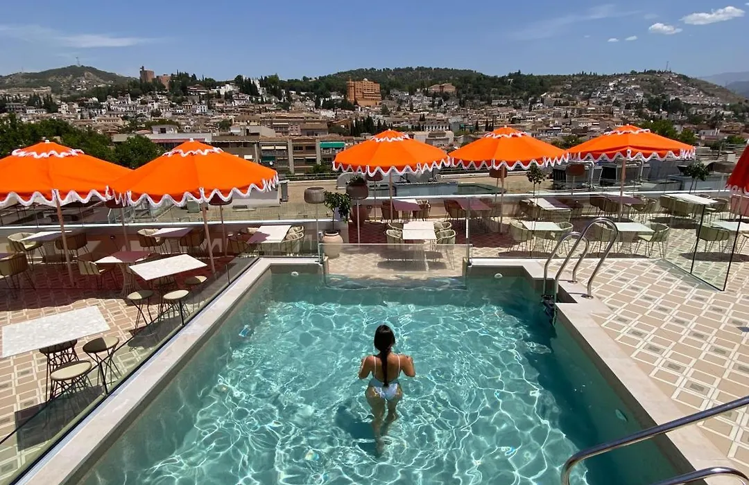 Barcelo Carmen Granada, a 4-star hotel with an 8.9/10 rating, features 251 rooms and a newly renovated setting that showcases views of the Alhambra and Sierra Nevada. Amenities include a rooftop seasonal pool, a Fit-Experience Gym, and multiple dining options that highlight regional flavors.