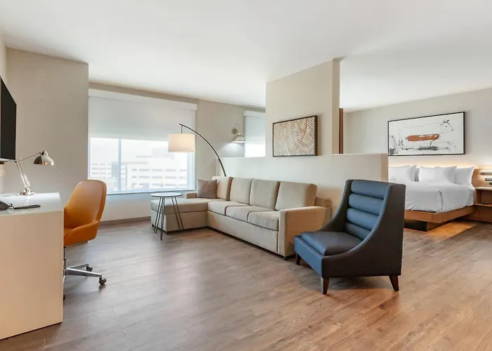 Cambria Hotel Plano - Richardson Garland, a 4-star hotel with an 8.8/10 rating on Booking.com, features air-conditioned rooms and a variety of amenities including a fitness center, bar, and shared lounge. Guests can enjoy easy access to dining and shopping options nearby.