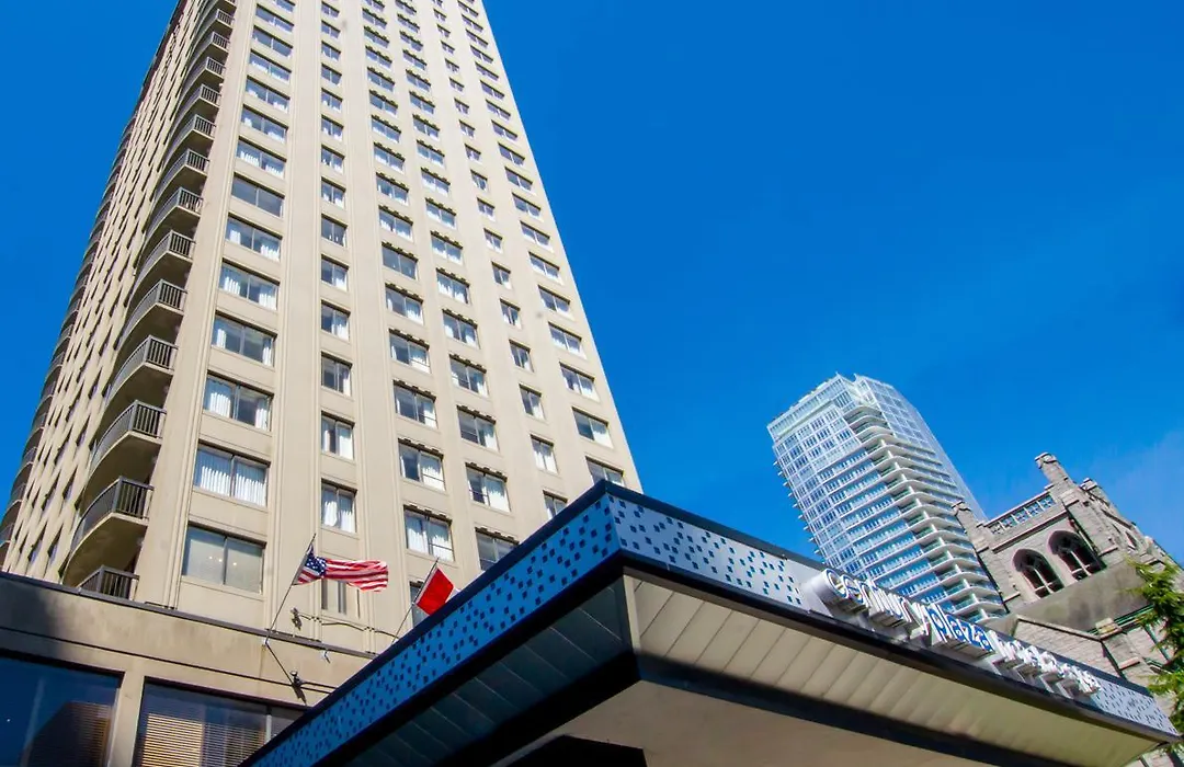 Century Plaza Hotel is within walking distance to Robson Street and provides easy access to public transport options, including bus stops and Burrard subway station, making it convenient for exploring the city's attractions like Stanley Park and Granville Island.
