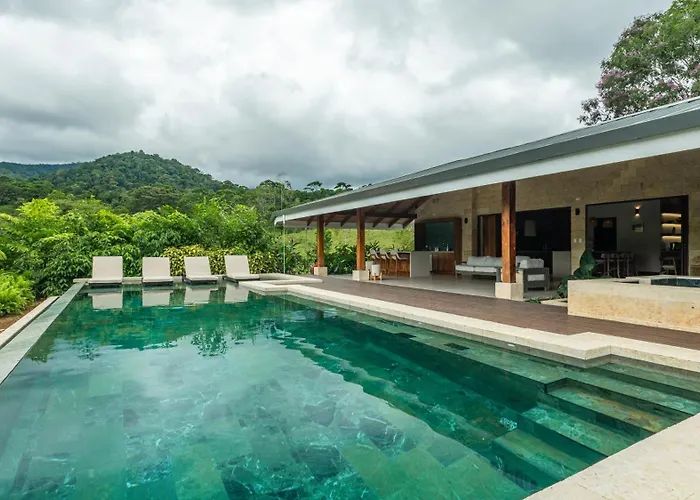 Chachagua Rainforest Hotel & Hot Springs offers a unique experience combining the beauty of the rainforest with luxury accommodations and natural hot springs. This 4-star La Fortuna hotel features a variety of bungalows and villas, a restaurant serving authentic Costa Rican cuisine, and a private pool area surrounded by lush greenery.