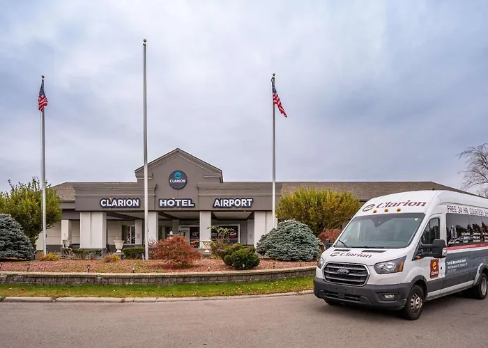 Clarion Hotel Detroit Metro Airport offers convenient access to the Detroit Metropolitan Wayne County Airport and features a complimentary roundtrip airport shuttle. This 3-star Romulus hotel includes amenities such as free WiFi, an outdoor pool, and an on-site restaurant serving American cuisine.
