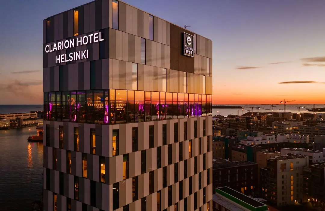 Clarion Hotel Helsinki, a 4-star hotel rated 8.7/10 on Booking.com, features a rooftop pool, 425 well-designed rooms, and a vibrant dining experience at Kitchen & Table. The hotel serves as a renowned meeting spot in the Jätkäsaari district, offering state-of-the-art conference facilities for up to 1000 attendees.