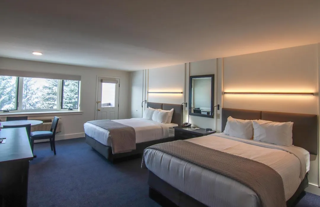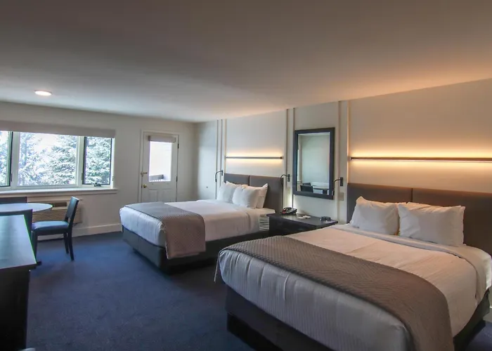 Crystal Mountain offers several accommodation types, including cozy hotel rooms and holiday homes equipped with amenities like microwaves, refrigerators, and flat-screen TVs. Rooms are designed for comfort, some featuring jetted spa baths and fireplaces, while others provide easy access to outdoor activities.