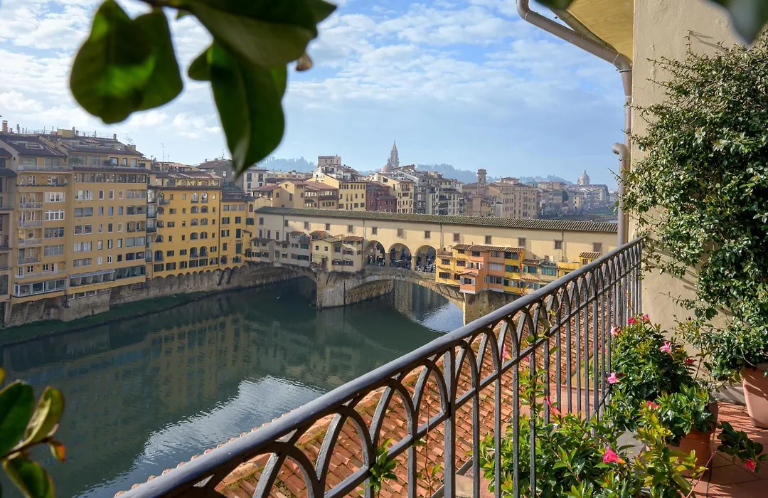 Hotel Degli Orafi is a prestigious 4-star hotel featuring a panoramic rooftop bar with views over the Arno and Ponte Vecchio. This historic property dates back to the 12th century, offering an ancient ballroom for a popular buffet breakfast and a cozy library for relaxation. The hotel is well-rated at 9.0/10 on Booking.com.