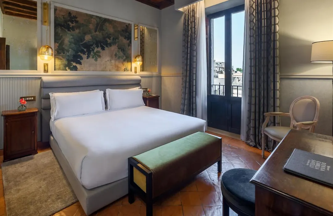 Rooms at Donna Camilla Savelli - Vretreats are elegantly furnished and equipped with amenities such as a minibar, a flat-screen TV, air conditioning, and free toiletries. Several accommodations overlook the tranquil internal courtyard, providing a peaceful atmosphere. The hotel consists of 75 rooms, including various suites featuring private terraces and luxurious touches.