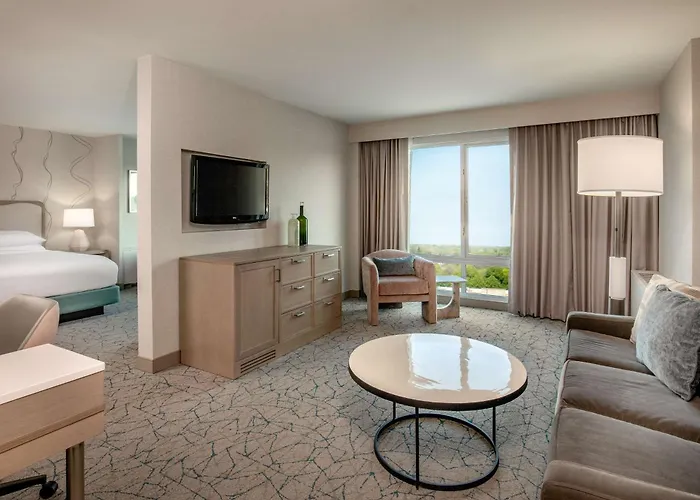 Leisure amenities at Doubletree By Hilton include an outdoor pool, an indoor pool, and a fully equipped fitness center. The hotel also offers a 22000 square feet conference center ideal for meetings and events, equipped with A/V technology and catering services.