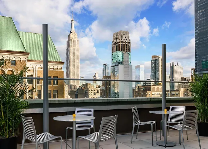 Doubletree By Hilton New York Times Square South offers convenient access to key attractions and local conveniences. This 4-star hotel features a restaurant, fitness center, and a rooftop bar with views of the Empire State Building. The hotel has a Booking.com rating of 8.1/10.