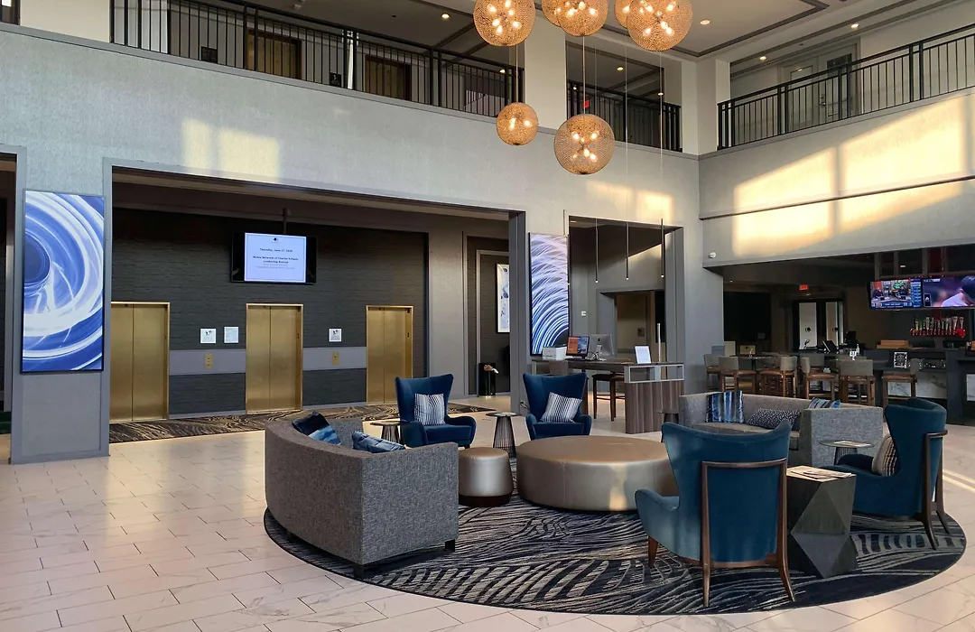 The property features 21 meeting rooms, including IACC-approved facilities and the Esplanade Lakes Ballroom with panoramic lake views. A complimentary shuttle is available within five miles, including transport to the local train station for access to downtown Chicago.