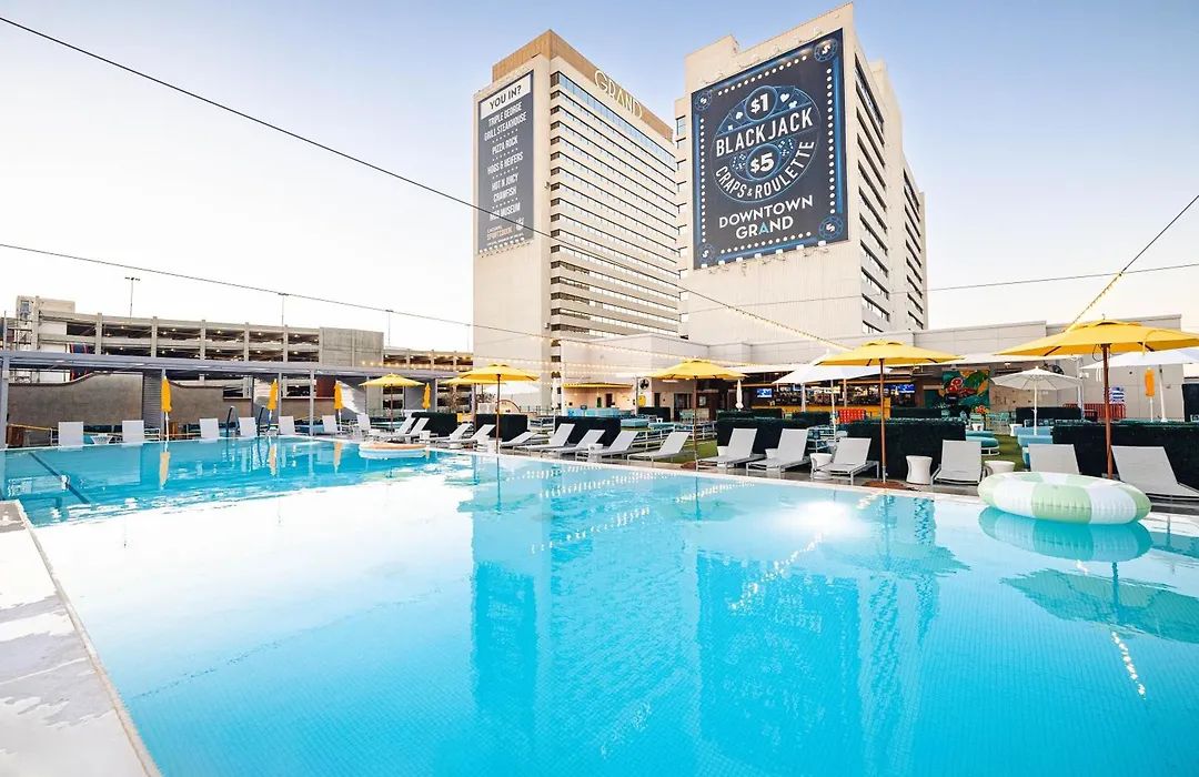 Downtown Grand Hotel & Casino offers a vibrant Las Vegas experience with its 8.0/10 rating. This 3-star hotel features a casino, an expansive pool area, and a variety of dining options. Amenities include a fitness center, event spaces, and free WiFi.