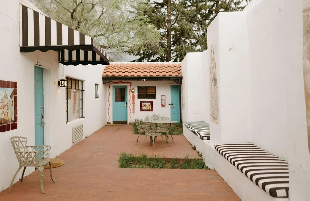 El Rey Court, a 3-star Santa Fe hotel, is an iconic adobe roadside motor court originally built in 1936, set on five acres of landscaped gardens. The hotel features a heated outdoor pool and provides complimentary WiFi throughout the property.