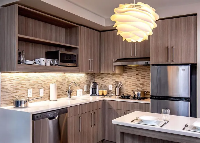 The hotel provides vibrant guestrooms featuring signature Westin Heavenly Beds and free Wi-Fi. Each spacious suite includes a fully equipped in-room kitchen, a flat-screen TV, and open-flow layouts for comfort.