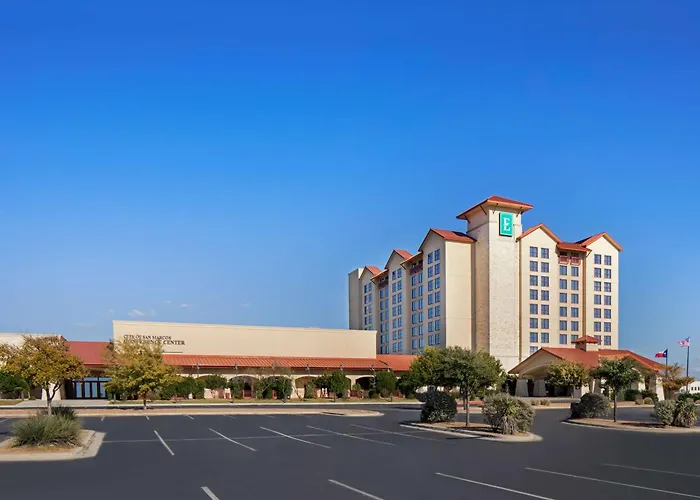 Embassy Suites San Marcos Hotel Conference Center, a 4-star hotel rated 8.1/10 on Booking.com, offers spacious accommodations with modern amenities and a full-service spa. The hotel features an outdoor pool, a gym equipped with a Peloton(R) Bike, and extensive conference facilities totaling over 78800 square feet.