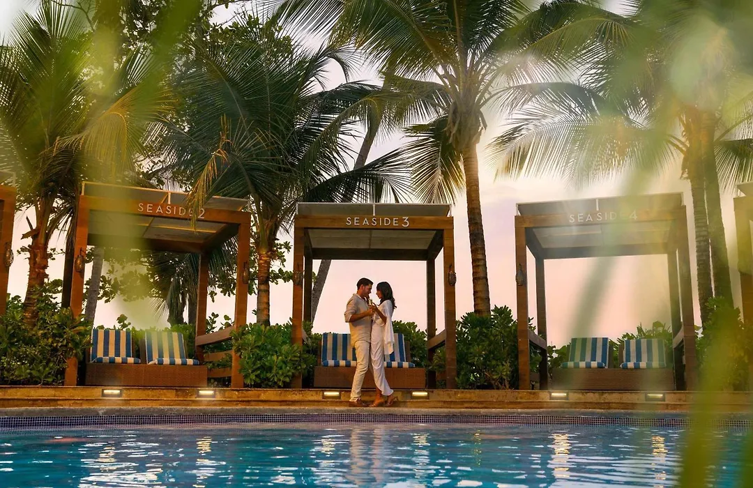 The hotel features Well & Being Spa, providing personalized wellness experiences, and a fitness center. Additionally, four signature pools with private cabanas invite relaxation in a lush landscape.