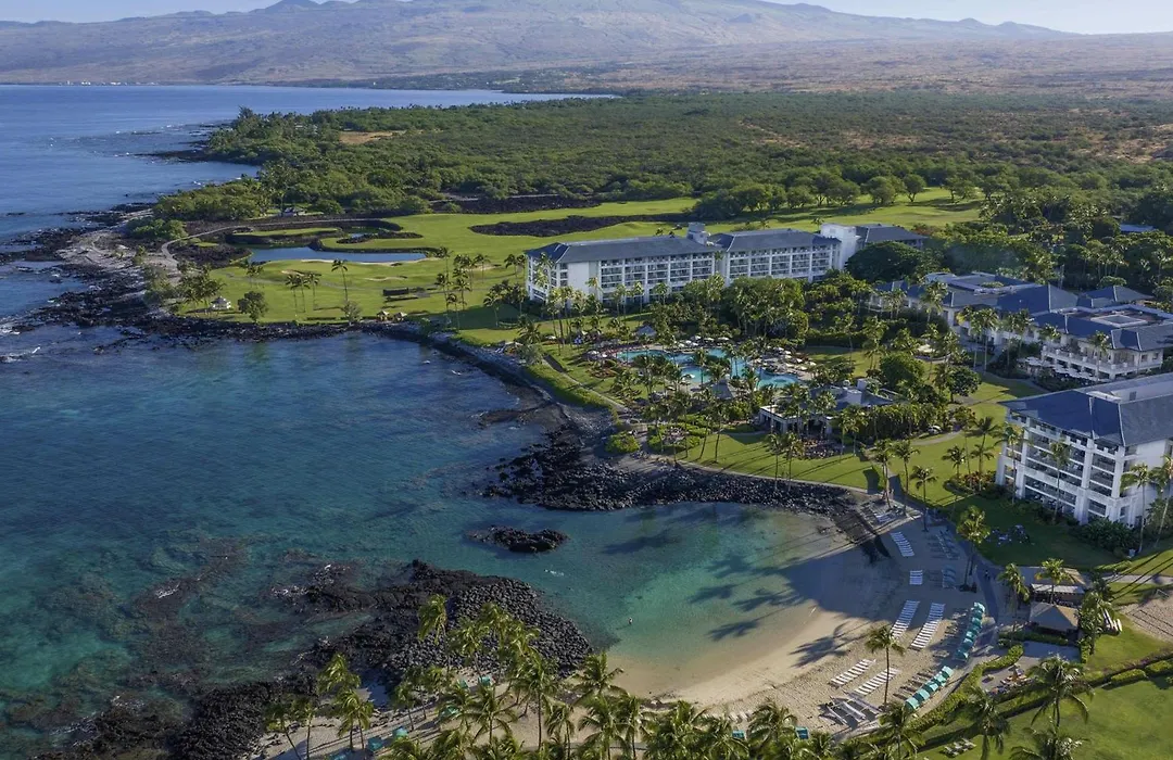 Fairmont Orchid offers a luxury experience along the Kohala Coast, featuring a stunning beachfront location with a white sand beach and a 10000 square foot oceanfront pool. This 5-star Waikoloa hotel encompasses 32 oceanfront acres with world-class amenities, including the award-winning Spa Without Walls and multiple dining options.