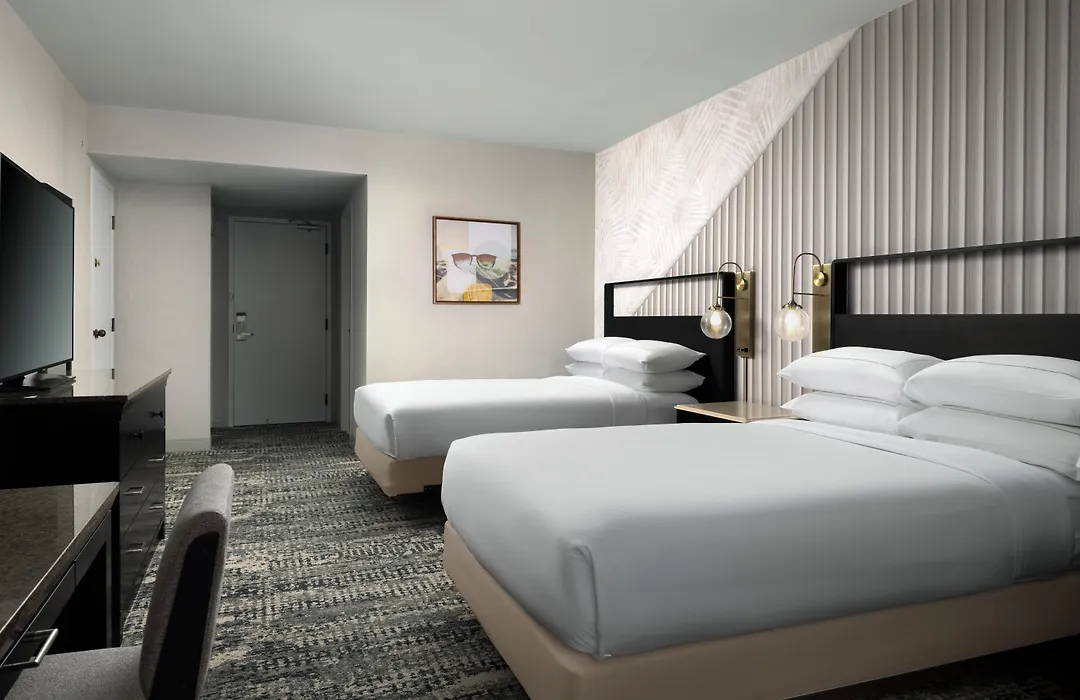 Guests at Hotel Fera Anaheim can enjoy recreational facilities including an outdoor pool, hot tub, and pickleball courts. The hotel features a well-equipped fitness center and ample meeting space totaling 30000 square feet, suitable for business gatherings.